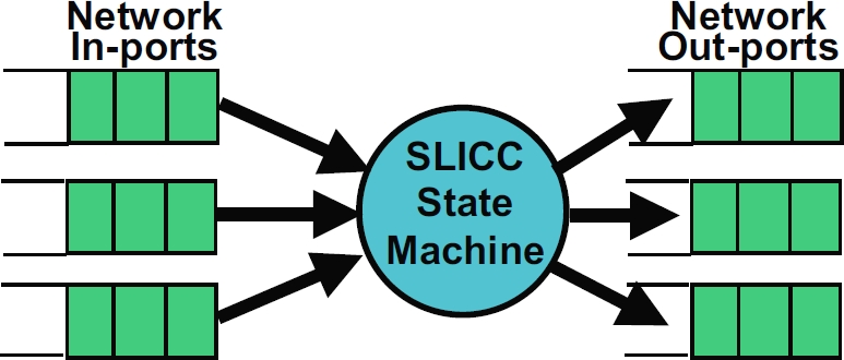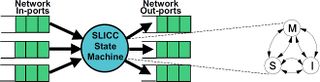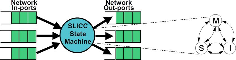 High level picture of connection between SLICC state machine and network ports. This picture is taken from the GEMS tutorial in ISCA 2005.