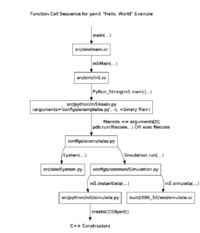 The following figure shows the function call sequence for the initialization of gem5 when running the "Hello, World" example given in the "Introduction" section (http://gem5.org/Introduction#Running).